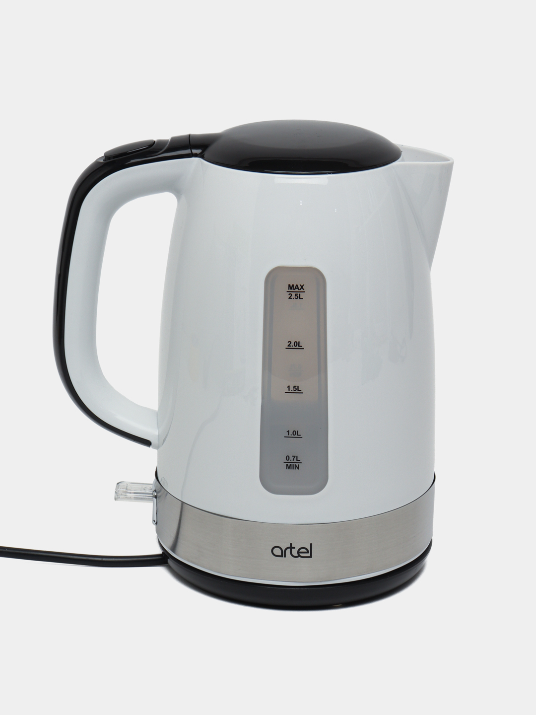 Электрический чайник Artel KE 8813, объемом в 2,5 литра, привлекает своим приятным дизайном. Максимальная мощность чайника 2200 Ватт. К тому же, данная модель относится к классу энергоэффективности А++. В устройстве предусмотрена система защиты от включения без воды в резервуаре, что обеспечит долгий срок службы вашей техники. Корпус его выполнен из термостойкого пищевого пластика, не выделяющего неприятный запах при нагреве. Более того, прозрачная шкала на корпусе позволит точно определить уровень оставшейся воды в резервуаре. К прочим отличительным особенностям данной модели можно также отнести поворот чайника на 360 градусов.
