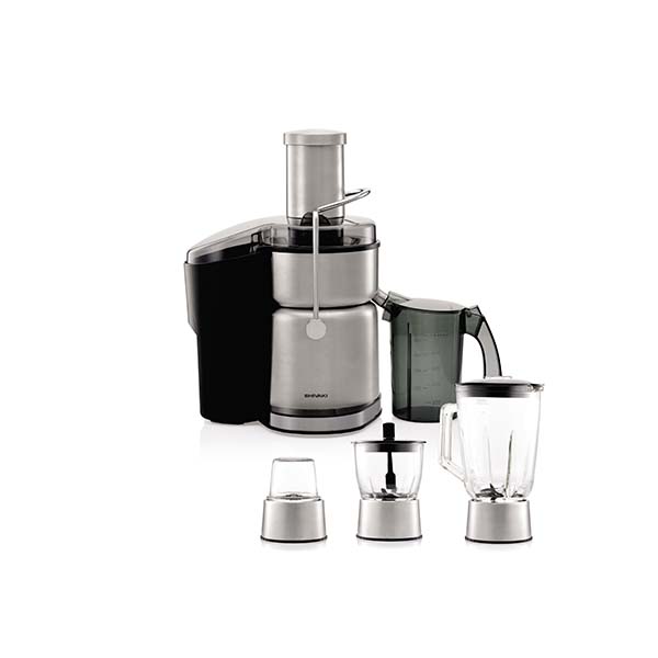 Соковыжималка Shivaki JM-615B привлекает не только своим изящным дизайном, но и многофункциональностью. Максимальная мощность её составляет 800 Ватт и этого достаточно для того, чтобы всего на несколько минут полностью выжать сок из любых фруктов и овощей. Данная модель центробежного типа оснащена пятью степенями скоростей. Благодаря своим дополнительным функциям, устройство можно использовать также в качестве мясорубки, блендера и даже кофемолки. К тому же вы с лёгкостью можете измельчить различные фрукты и овощи твёрдых сортов, за счёт высокой скорости до 20 тысяч оборотов в минуту. Стоит также отметить, что широкое горлышко диаметром 75 мм позволяет без особого труда погружать продукты целиком, поэтому вам нет необходимости их разрезать, что значительно сэкономит ваше время.