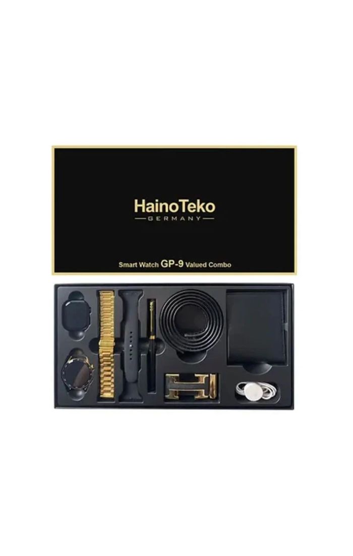 Подарочный набор Haino Teko GP-9 – это набор из нескольких предметов, которые станут отличным подарком для любого человека, увлекающегося технологиями и модой. В комплект входят смарт часы квадратной и круглой формы, которые выполнены в золотом цвете и имеют современный дизайн. Часы могут использоваться как для отслеживания времени, так и для мониторинга физической активности и сна. Кроме того, в наборе есть золотой и матовый ремешок для смарт часов.