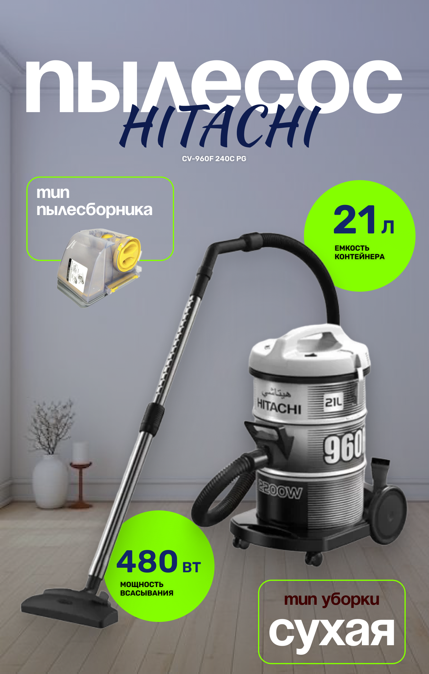 Объем пылесборника - 21 л