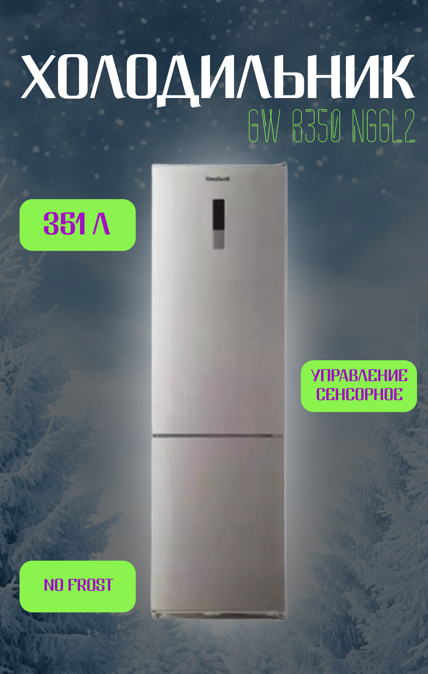 Холодильник Goodwell GW B350 NGGL2 – это современное решение для хранения продуктов с общим объемом 351 л (холодильная камера 257 л, морозильная 94 л).